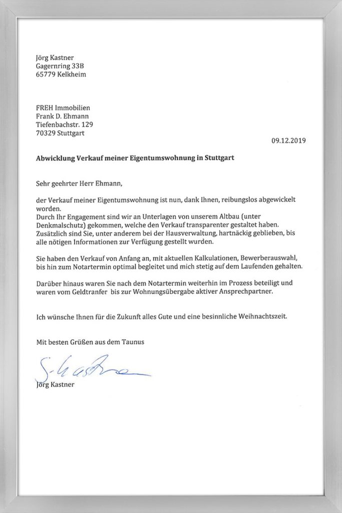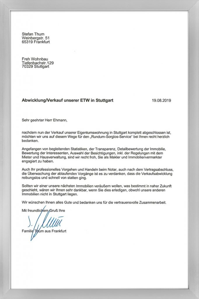 FREH Immobilien e.K. ist ein Baubetreuer, Dienstleister und Immobilienvertrieb mit Sitz in Stuttgart. Mit langjährigen Erfahrung, umfassender Sachkunde sind wir Ihr zuverlässiger Partner in allen Fragen rund um Immobilien.
