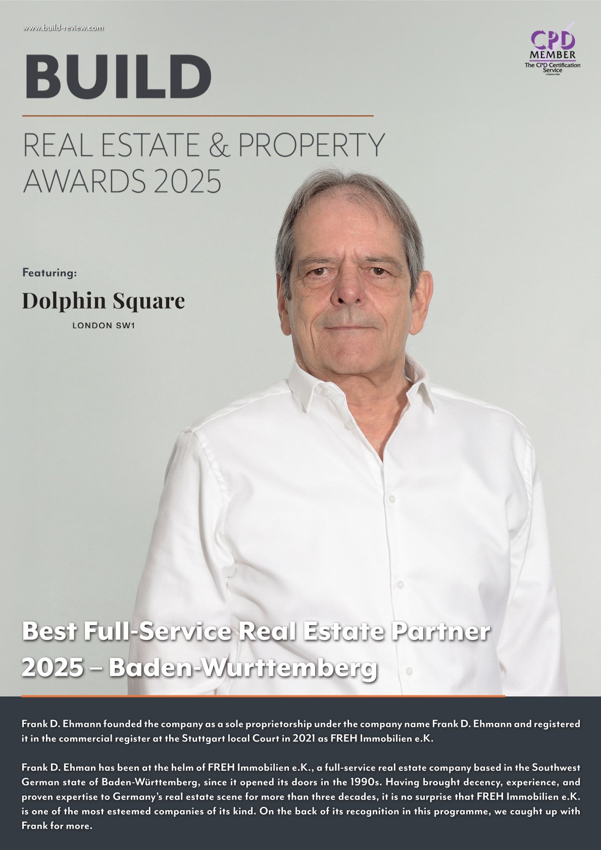 Frank D. Ehmann leitet FREH Immobilien e.K., ein Full-Service-Immobilienunternehmen mit Sitz im südwestdeutschen Bundesland Baden-Württemberg, seit der Gründung in den 1990er Jahren.